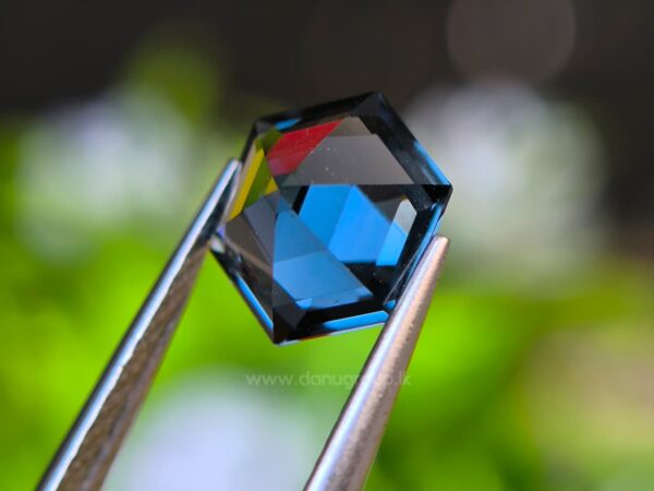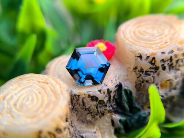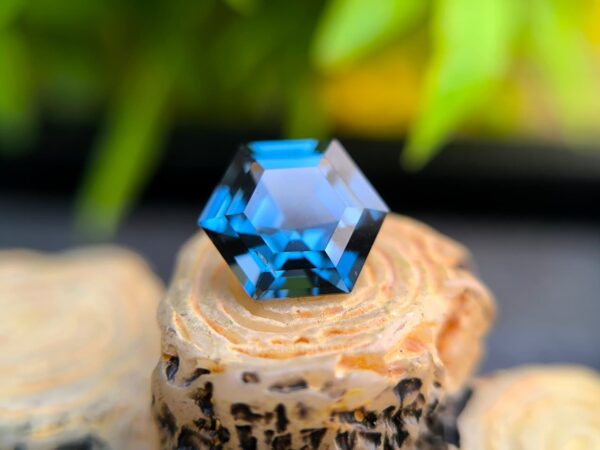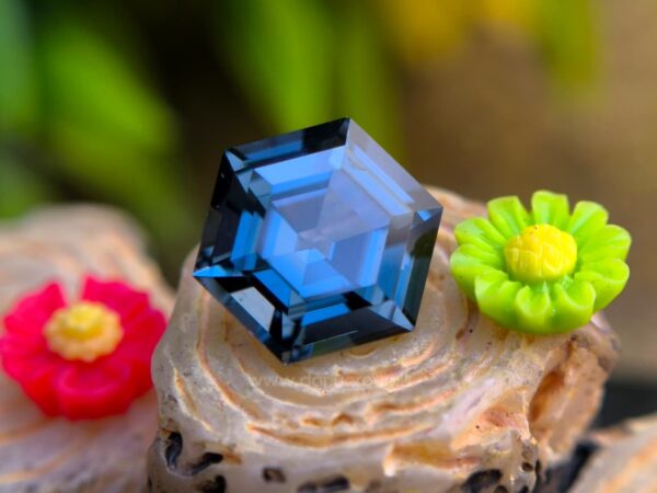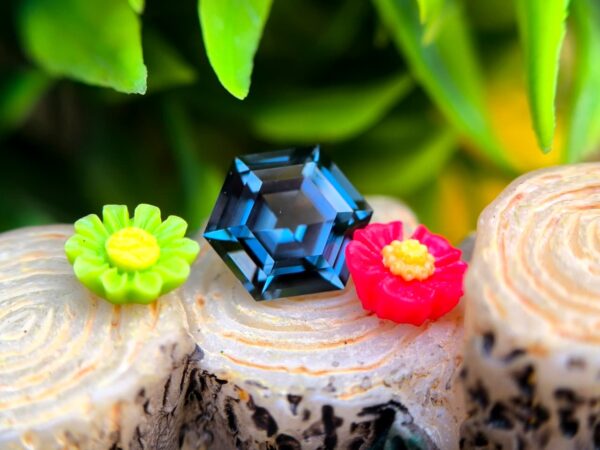 Before cutting, the rough crystal showed strong internal potential, but also required deep understanding to preserve its character. Through precise lapidary work, the stone was transformed into a 1.65 carat hexagon-cut spinel, measuring 7.22 × 8.38 × 4.30 mm, revealing a refined greenish-blue hue with remarkable depth and balance.