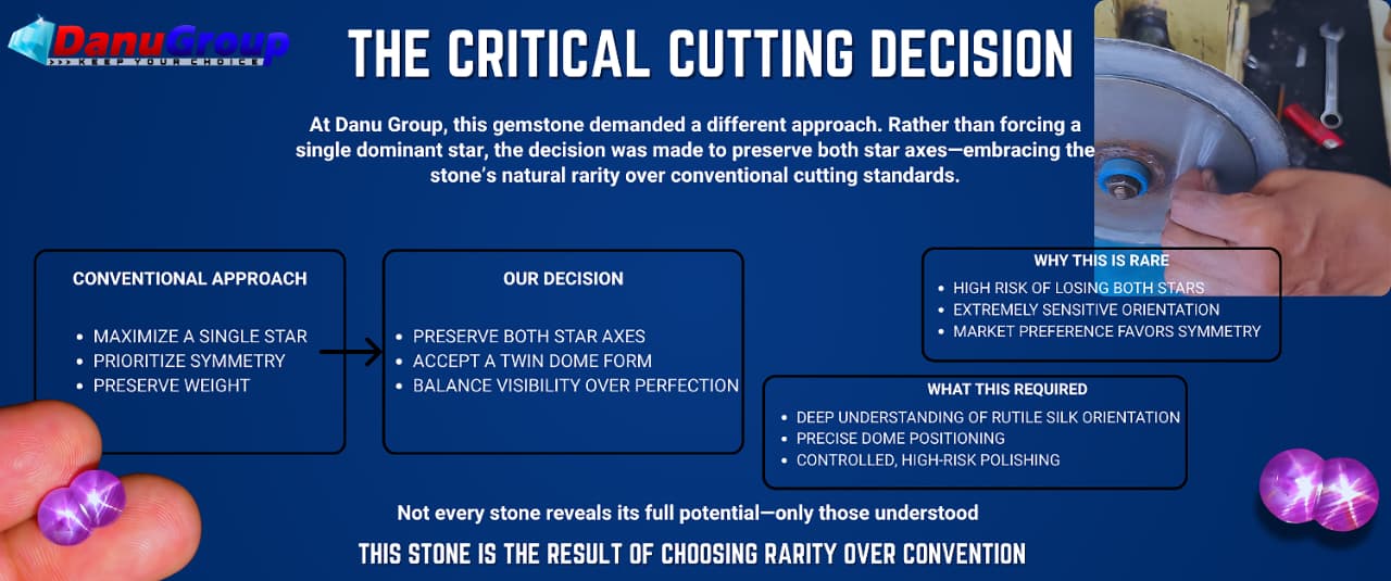 However, this stone revealed something unusual — two possible star axes during early evaluation. This is where cutting becomes not just a skill, but a decision-making art.